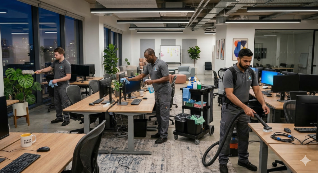 Janitorial Services: Our experienced and well-trained janitorial staff ensures that your facilities are clean, sanitized, and presentable at all times. From daily cleaning routines to specialized cleaning projects, we have the expertise to maintain a pristine environment for your business.